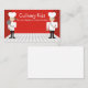 Gulliga-ish flicka- och pojkekockvisitkortar med kök som lagar mat stekheta utensils, stekpanna eller kastrull, perfekt laga mat för för barn, klassificerar eller kulinarisk anvisning. Att ha på sig kockhattar och lag eller jackor, den hållande blandande skeden, spatel, viftar och att stå på ett golv för diamantmönstergrått med röd bakgrund.