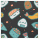Gulligt lyckligt seamless sushimönster på svart tyg