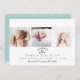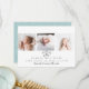 Gulligt kort för meddelande för födelse för remsa för foto för klotterhjärtor 3 med geometrisk mönstertäckning för aqua.