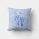 Ett pojkefödelsemeddelande kudder med gulliga blåttfotspår mot en mjuk marmorerad blåttbakgrund. Personifiera, genom att tillfoga din pojke namn till anpassadetexten som något att säga: Pojke!