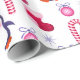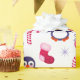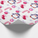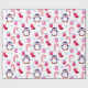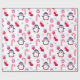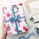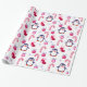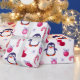 Gulligt rosa- & vitjulmönster med pingvin presentpapper