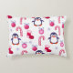 Gulligt rosa- & vitjulmönster med pingvin prydnadskudde