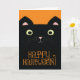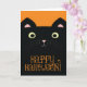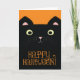 Den gulliga enkla svart kattillustrationen med Halloween-anslår orange bakgrund och att charma "happy halloween" text.