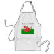 Ett robustt vitförkläde som ska skräddarsy, med en gullig walesisk röd drake med "den Wales för evigt" i walesiskt i svart bokstäver, från en handpainted akvarellillustration av Judy Adamson.