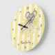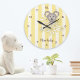 Produktdesignet har en baby koala omgiven av blommor. Den söta djurteckningen med gula ränder gör en söt och unik väggklocka med personlig text för barnkammare och barnrum.