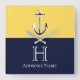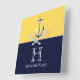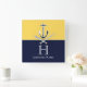 Gult Anchor Monogram för marinblå mustard Fyrkantig Klocka