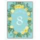 Gult & Aqua Vintage Vår Blommigt Bröllop Bordsnummer