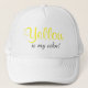 Du kommer att kärlek den här snyggten hatt med den söta designen som anger färg. Citattexten är "Gult är mitt färg!" i en roligt och en söt typografisk blandning av gult och svart.