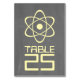 Cute and nerdy Atomic Chalkboard-Bordsnummer Card med en enkel atomiskt symbol i gult på en kritbordsbakgrund. Det här gäcket och roligt bord-kortet är perfekt för vetenskapsentusiastparet! Enkel att anpassa, lägg helt enkelt till rätt bordsnummer(er) på det utrymme som tillhandahålls. Klicka på Anpassa om du vill söka efter fler anpassningsalternativ.