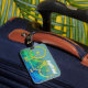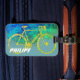 En coola digital illustration av en gult cykel på grönt och blå vattenfärgsbakgrund... för att lägga till namn i cyklisten och behålla ditt bagage säkert.