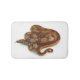 Fotografi av en kokt Gult Belly Boll Python centrerad på mattan.