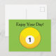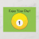 Ett exempel på en enkel gult av boll nummer ett. Detta söta idrottsspel är en av de många sätten att knyta band med vänner, kolleger och familjer. Det är en presentidé för sport älskare, bassäng eller snooker älskare, vänner, pappa och mamma. Anpassa eller anpassa det här vykortet för helgdag genom att lägga till egen text.