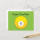 Gult Billiard Boll nummer ett personalisera Helg Vykort