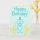 Det är Gulten Blå och blomma katt med hatt&t födelsedagskort. Bland de ljusa blommorna är katten med en blomhatt och med ett hjärta underbar. Det är designat att se smart ut. Jag hoppas att både den som användor detta kort och mottagaren kommer att bli lyckligare. Hjärtligt till den som du kärlek och ha lycklig!
