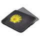 Laptop sleeve har en gult blomma på den.