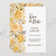 Denna moderna bröllop spara datum i blommigten gul ros är designad för par som söker sofistikering och tidlös skönhet när de tillkännager sin speciella dag för nära och kära. Ge dina gästers brevlådor glädje och framkalla upprördhet för dina kommande nybörjare med denna Spara-till-datum.