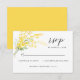 Gult Blommigt Mimosa Vår blommor Bröllop OSA. OSA kort med vackra vattenfärgsblommor från silver, mimosa-blommor och grönt i skuggor av gult och grönt med moderna kalligrafiskript och gult färg i bakgrunden. Du kan anpassa ordalydelsen, teckensnittet stil, färg och storlekt framför och bakom detta botaniska OSA kort. Matchande objekt är tillgängliga.