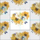 En mönster av buketter av gult och blå blommigtar, solblommor och löv.