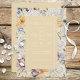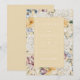 Blommigten ram är fylld med blåa, gult, vita och rosa vattenfärgblommor och grönska. Mittdelen omges av en enda ram-insats. Baksidan har en komplimang bakgrund till gulten. Vackert och elegant, det här kortet är en del av Gulten Blue & White Blommigt Bröllop Svit med kort skapat av enbart Farmhouse Press.