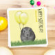Den här fina födelsedagsdesignen har ett sött grått Guinea gris med två gulters ballonger. Anpassa malltexten, ta bort valfri text eller klicka på anpassa för att välja ett teckensnitt stil, storlekt och färg som du föredrar.