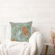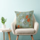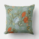 Vackra, vibrerande teal, röd och gult dekorativ kudde med tulpaner och fjärilar.