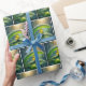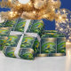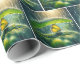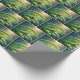 En livfull fjäril för gult vilar på ett ömt löv mitt i en lätt regndusch, med solfiltrering genom dropparna