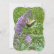 hälsningskort med vacker gult-fjäril på en lila blomstrande buss