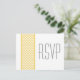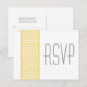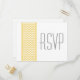 Chic och modernt vykort för svar på Chevron Gräns Bröllop med som innehåller ett enkelt chevron mönster gräns i gult och vitt. Den här snyggten anger tonen för ett elegant bröllop. Enkel att anpassa, lägg bara till din bröllop-information i den text fält tillhandahåller. Klicka på Anpassa om du vill söka efter fler anpassningsalternativ.
