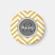 Monogrammed vit och gult chevron zigzag mönster med eget namn. Den trendigen geometriska designen för , som har en grått-cirkelnamnplåt som enkelt kan anpassas till det första namn och det sista namnet från det ursprungliga brev.