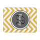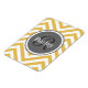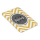 Monogrammed vit och gult chevron zigzag mönster med eget namn. Den trendigen geometriska designen för , som har en grått-cirkelnamnplåt som enkelt kan anpassas till det första namn och det sista namnet från det ursprungliga brev.