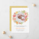 Mall för födelseanmälan i elegant med blommigt av rosa ros, lavender, citrusfrukter i orange och blad i grönten på framsidan. Baksidan visar en punktbakgrund för gult. På framsidan, en bild till din nyfödda som kan läggas till på detta kort. Använda en fyrkantig storlek bild så att den passar lätt. De pappra egenskaperna är vackra runt kant. Perfekt kort för att meddela att nyfödd bebis kommer med sin födelsestatus. Underbar för både pojke och flicka. Perfekt för sommar- och vår-säsonger!