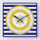 Gult Compass Ro Blue and White Rand Fyrkantig Klocka