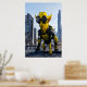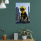 En Gult utomjordisk cyberpunk-beast med cyberpunk-kläder och svarta solglasögon står på alla fyra i staden. Det här är en AI-skapad konst.