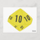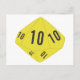 D10-Bordsnumrets vykort - Bord 10 Dubbla-sidig Geeky och D10-bordsnumrets vykort med en D10-sidig dice i gult. Det här bordsnumret för snabbt och roligt är dubbla-sidigt, så se till att siffrorna på båda sidor ändras. Enkel att anpassa, ändra numren för det eller de bordsnummer som ska användas. Klicka på Anpassa om du vill söka efter fler anpassningsalternativ.