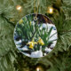 Gult Daffodils blommor i snö Julgransprydnad Keramik