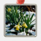 Gult Daffodils blommor i snö Julgransprydnad Metall