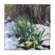Gult Daffodils i snö Kakelplatta