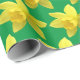 Gult Daffodils on Grönt Blommigt Presentpapper