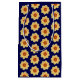 Glamorize dina presenter med den här lilla storleka presentsäcken med blå trim och innehåller fotobilden av en gult Dahlia-blomma på en marin blå bakgrund och tryckt i ett upprepande mönster. En roligt, blommigt design!