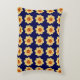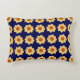 Dekorera din livsmiljö med den här accentkudden som innehåller fotobilden av en liten gult Dahlia-blomma som är tryckt i ett upprepande mönster på en marin blå bakgrund. En roligt, blommigt design! Markera kuddväven stil.