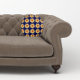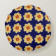 Håll dig till ditt hem med den här runda dekorativ kudde som innehåller fotobilden av en gult Dahlia-blomma på en marin blå bakgrund och tryckt i ett upprepande mönster. En roligt, blommigt design! Markera kuddväven stil.