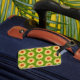 Behålla av bagaget med den här akryliska bagagetaggen som innehåller fotobilden av en gult Dahlia-blomma på gröntens bakgrund och som är tryckt i ett upprepande mönster. En roligt, blommigt design!