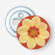 Rund, magnetisk flaska-öppnare som har fotobilden av en gult Dahlia-blomma på röd bakgrund. En underbar, blommigt design!