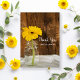 Skriva ett varmt budskap om tacksamhet och uppskattning för gåvor som mottas efter en lantgård i stil eller ett bergsområde i förlovning party, möhippa eller giftermål med Daisyn för charmerande Gult i Mason Burk Barn Land Flat Bröllop. Tackkort av den orustiska chicen har ett digitalt färgfoto av en burk av glaskonservativ, fylld med en blommar av daisy av gult och en bakgrund av barrträd och barrträ.