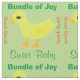 Gult Ducky med orange beak och fötter som är dunkla i det matta daghemmet mönster på gröntens bakgrund. Med ordalydelsen i grönt, "Bundle of Joy", Sweet Baby. Quack Quack är skrivet i orange. Originalteckning av TamiraZDesign.