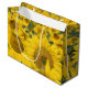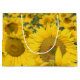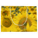 En presentväska med ett vackert foto av en fält av gult solblommor.