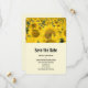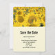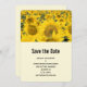 Bröllop spara datum med ett vackert foto av en fält av gult solblommor.