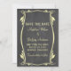 Elegant och trendig Flourish Chalkboard Spara datum meddelande med en krita och en finare-snurrare och löv art deco gräns i gult. Enkel att anpassa, lägg bara till information om bröllop. Klicka på Anpassa om du vill söka efter fler anpassningsalternativ.