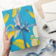 gult färsk frukt, tropiska bananer, sömlös mönster, i blå bakgrund