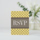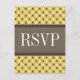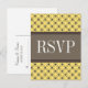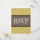 Trendig och chic Finare Lattice Bröllop OSA Postcard med en snyggt cirkel och diamant som studerade mönster över en pulserande citronzest-bakgrund med en bred, tvåtonad brun gräns. Denna elegant OSA kort är perfekt för ett modernt bröllop. Enkel att anpassa, lägg bara till din bröllop-information i den text fält tillhandahåller. Klicka på Anpassa om du vill söka efter fler anpassningsalternativ.
